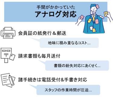 会員証を紙で発行・郵送しており、再発行や情報変更のたびに負担がかかっていた。